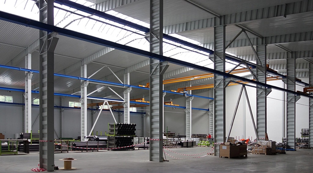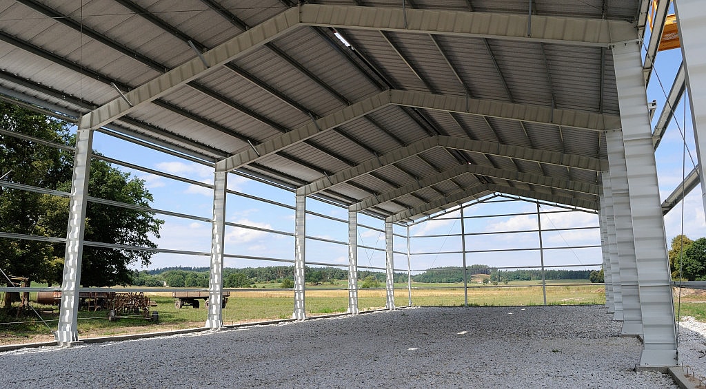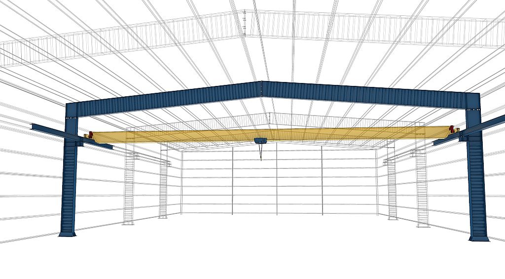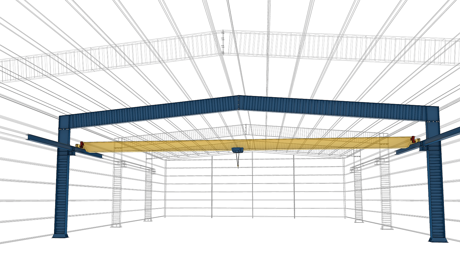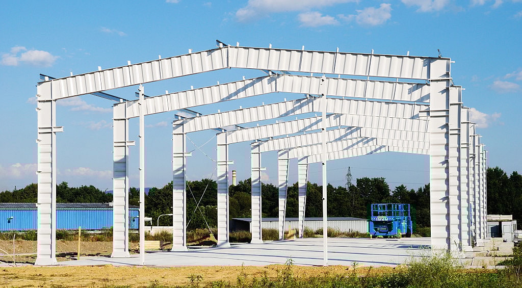 Rám, ktorý je široko používaný v priemyselných halách s nízkym sklonom strechy a väčším rozpätím. Možnosť prípravy pre žeriavovú dráhu.