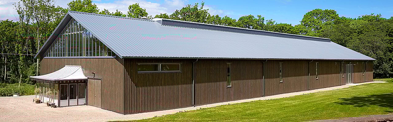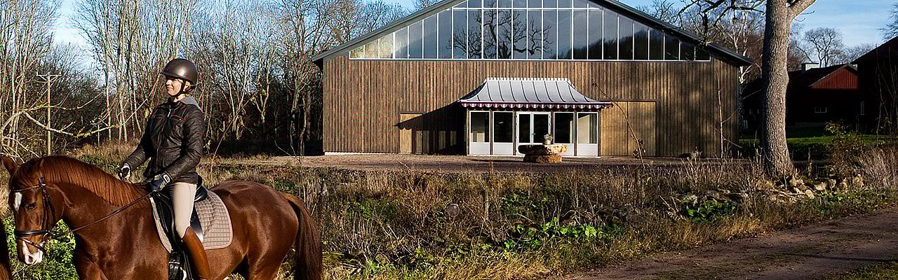 Když začala Annette Hemberg ze statku Råbäck plánovat svoji jezdeckou halu, musela vzít ohled na dvě důležité věci. První bylo místo – jízdárna musí být v přirozeném souladu s hlavní budovou a dalším budovami. Druhou bylo zvážení přirozeného okolí statku v oblasti Kinnekulle, které je již dlouho součástí přírodní rezervace.